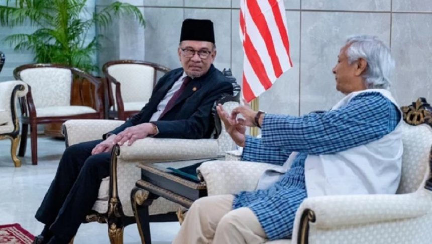 এর আগে দুপুরে ঢাকার হযরত শাহজালাল বিমানবন্দরে নামার পর মালয়েশিয়ার প্রধানমন্ত্রীকে অভ্যর্থনা জানান প্রধান উপদেষ্টা। তাঁকে লালগালিচা সংবর্ধনা দেওয়া হয়। পরে দুই রাষ্ট্রনেতা ‘ঘনিষ্ঠ বন্ধুত্বের প্রকাশ’ ঘটিয়ে একই গাড়িতে করে হোটেল ইন্টারকন্টিনেন্টালে যান। সেখানে আনুষ্ঠানিক দ্বিপক্ষীয় আলোচনা হয়।