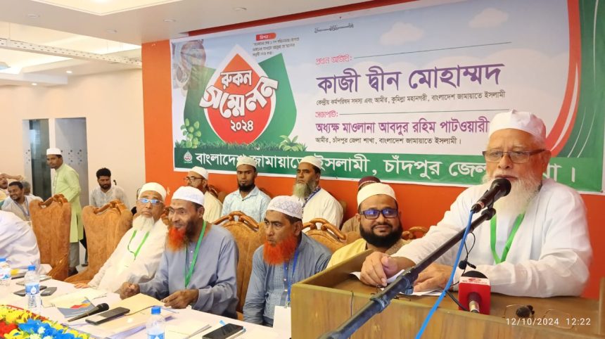 শনিবার (১২ অক্টোবর) দুপুরে চাঁদপুর শহরের একটি কমিউনিটি সেন্টারে চাঁদপুর জেলা জামায়াতের রুকন সম্মেলনে প্রধান অতিথির বক্তব্যে তিনি এসব কথা বলেন।