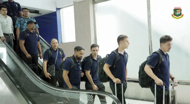 ঢাকা পৌছেছে দক্ষিণ আফ্রিকা দল। বাংলাদেশের বিপক্ষে দুই ম্যাচের টেস্ট সিরিজ খেলতে বুধবার (১৬ অক্টোবর) হযরত শাহাজালাল আন্তর্জাতিক বিমান বন্দরে সকাল ৯টার কিছুক্ষণ আগেই পা রাখে প্রোটিয়া দল।