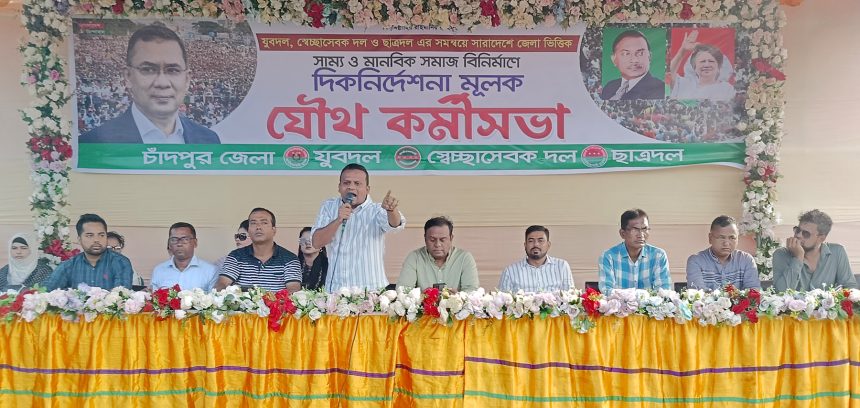 রোববার (২০ অক্টোবর) বিকেলে চাঁদপুর জেলা বিএনপির সভাপতির বাসভবনে সাম্য ও মানবিক বাংলাদেশ বিনির্মানের স্লোগানকে সামনে রেখে জেলা ছাত্রদল, যুবদল ও স্বেচ্ছাসেবক দলের যৌথ কর্মীসভায় সভাপতির বক্তব্যে নেতাকর্মীদের উদ্দেশ্যে তিনি এসব কথা বলেন।
