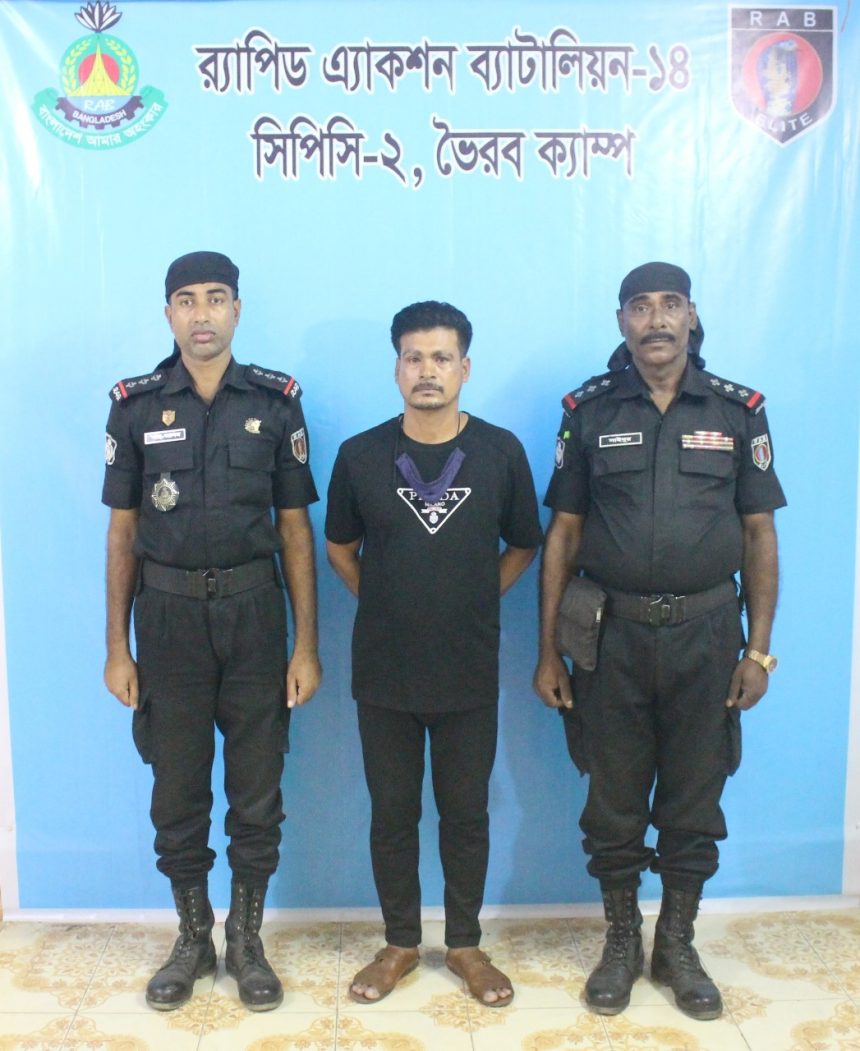 কিশোরগঞ্জের ভৈরব বৈষম্য বিরোধী ছাত্র আন্দোলনে ছাত্র-জনতার উপর হামলার ঘটনায় বিএনপির দুই নেতার করা মামলায় মর্তুজা আলম মহসিন(৫০)কে গ্রেফতার করেছে র্যাব-১৪, সিপিসি-২ ভৈরব ক্যাম্পের সদস্যরা। আজ বুধবার ২৩ অক্টোবর বিকালে পৌর শহরের লক্ষ্মীপুর তাতারকান্দি এলাকা থেকে তাকে গ্রেফতার করা হয়। তিনি ওই এলাকার মৃত ধন মিয়ার ছেলে। আজ সন্ধ্যায় এক প্রেস বিজ্ঞপ্তিতে মাধ্যমে সাংবাদিকদের এ তথ্য নিশ্চিত করেন ভৈরব র্যাব ক্যাম্প স্কোয়াড কমান্ডার এএসপি মো. শহিদুল্লাহ।