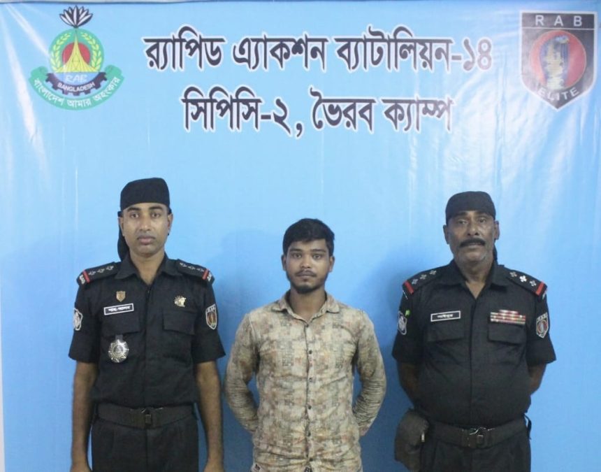 কিশোরগঞ্জের ভৈরবে মোটরসাইকেলে বহন করে মাদক পাচার করতে গিয়ে নিষিদ্ধ স্কার্ফ সিরাপসহ এক কারবারিকে গ্রেফতার করেছে র্যাব-১৪, সিপিসি-২, ভৈরব ক্যাম্পের সদস্যরা। ২২ অক্টোবর মঙ্গলবার রাতে পৌর শহরের পৌরসভা রোডের সামনে অভিযান চালিয়ে তাকে আটক করা হয়।