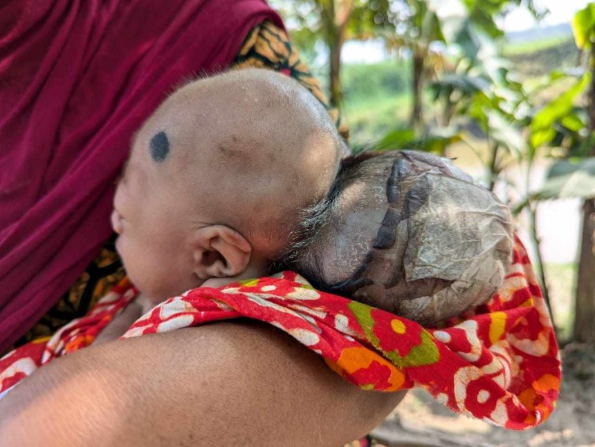 মাত্র তিন মাস বয়স শিশু রিফাতের। জন্মের পর থেকে মাথার পেছনে একটি ছোটো বৃত্তের সৃষ্টি হয়।