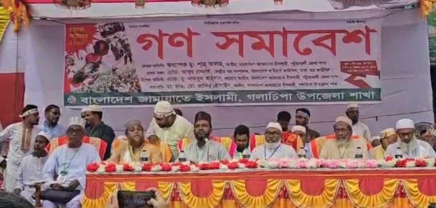 পটুয়াখালীর গলাচিপায় গণসমাবেশ করেছে বাংলাদেশ জামায়াতে ইসলামী। বুধবার (৩০ অক্টোবর) বিকেলে ৪ টায় গলাচিপা পৌর মঞ্চে জামায়াতে ইসলামী গলাচিপা উপজেলা শাখার আয়োজনে এ গণ সমাবেশ অনুষ্ঠিত হয়। জামায়াতে ইসলামী গলাচিপা উপজেলা শাখার আমীর ডা. মাওলানা জাকির হোসাইন এর সভাপতিত্বে প্রধান অতিথি ছিলেন বাংলাদেশ জামায়াতে ইসলামী কেন্দ্রীয় সূরার সদস্য ও পটুয়াখালী জেলা আমীর অধ্যাপক মু. শাহ আলম।