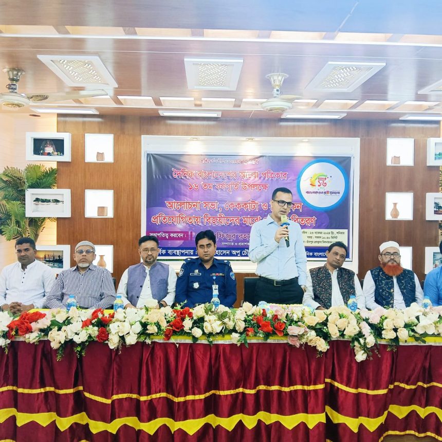 অনুষ্ঠানে দৈনিক বাংলাদেশের আলো পত্রিকার ১৬ তম বর্ষপূর্তি উপলক্ষে জেলা প্রশাসক সহ আমন্ত্রিত অতিথিরা কেক কাটেন, অতিথিদের সম্মাননা স্মারক প্রদান এবং গত ৯ নভেম্বর অনুষ্ঠিত চিত্রাংকন প্রতিযোগিতায় বিজয়ীদের মাঝে পুরস্কার বিতরণ করা হয়।
