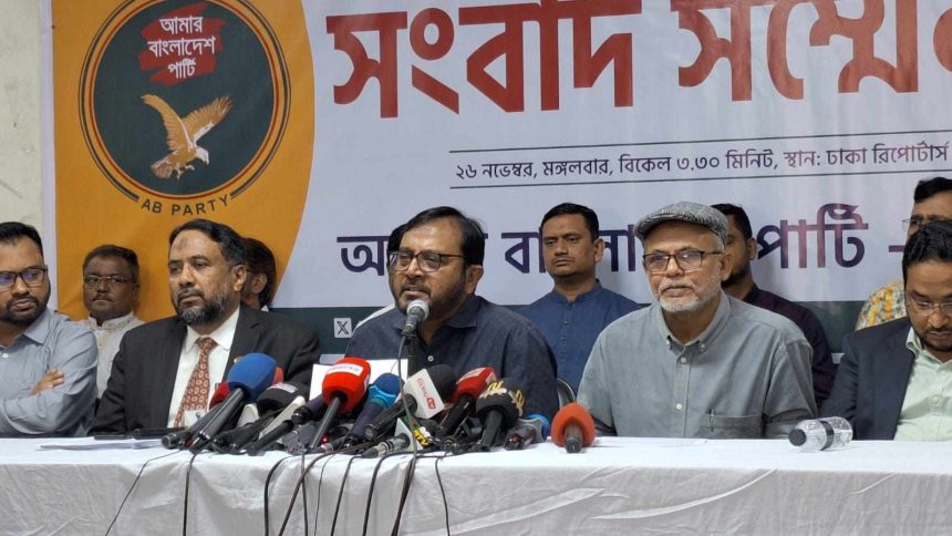 সংবাদ সম্মেলন আরও উপস্থিত ছিলেন এবি পার্টির যুগ্ম আহবায়ক এড. গোলাম ফারুক, সিনিয়র সহকারী সদস্য সচিব খালিদ হাসান, অর্থ সম্পাদক আমিনুল ইসলাম প্রমুখ।