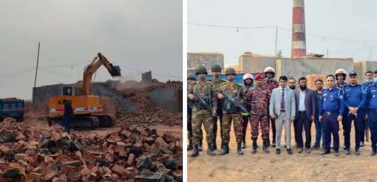গ্রামীণ সড়ক নষ্ট ও বায়ু দূষণ করায় দুই ইটভাটায় অভিযান