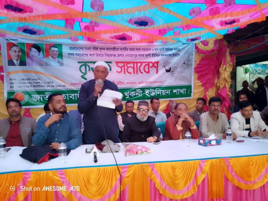 সিরাজগঞ্জের এনায়েতপুরে খুকনী ইউনিয়ন কৃষকদলের উদ্যোগে বাংলাদেশের সংখ্যা গরিষ্ঠ কৃষক জনগোষ্ঠীকে সংগঠিত করার লক্ষে সারাদেশে ৩ মাস ব্যাপী ইউনিয়ন পর্যায়ে কৃষক সমাবেশের অংশ হিসাবে কৃষক সমাবেশ অনুষ্ঠিত হয়েছে।