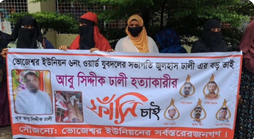 শরীয়তপুরের নড়িয়া উপজেলার ভোজেশ্বর ইউনিয়নের চান্দনি এলাকায় আধিপত্য বিস্তারকে কেন্দ্র করে নির্মমভাবে কুপিয়ে হত্যা করা হয় কৃষক আবু সিদ্দিক ঢালীকে। এ ঘটনার প্রতিবাদে বৃহস্পতিবার (২৪ জুলাই) দুপুরে শরীয়তপুর কেন্দ্রীয় শহীদ মিনারের সামনে থেকে বিক্ষোভ মিছিল ও ঘন্টাব্যাপী মানববন্ধন করেন নিহতের পরিবার ও স্থানীয় জনসাধারণ।