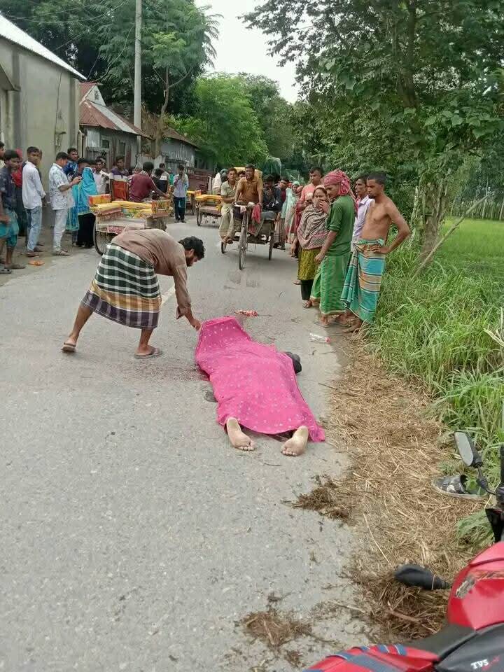 প্রত্যক্ষদর্শীরা জানান, সড়কের ওপর ঘাসের ডাঁটা ছড়িয়ে ছিটিয়ে থাকায় মোটরসাইকেলটি নিয়ন্ত্রণ হারিয়ে ফেলে এবং পিছলে গিয়ে একটি দ্রুতগতির ট্রাকের নিচে পড়ে। ট্রাকের চাকার নিচে পিষ্ট হয়ে চালক ঘটনাস্থলেই মারা যান।