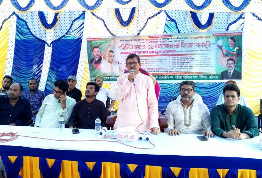 শুক্রবার(২৫ জুলাই) সন্ধ্যায় উপজেলার হাতিয়া ইউনিয়নের কৃষকদল ও মৎস্যজীবী দলের পরিচিতি সভা ও বিএনপি’র ৩১দফা লিফলেট বিতরণ কর্মসুচিতে প্রধান অতিথি হিসেবে এসব কথা বলেন কেন্দ্রীয় বিএনপি’র সহ-সাংগঠনিক সম্পাদক আব্দুল খালেক।