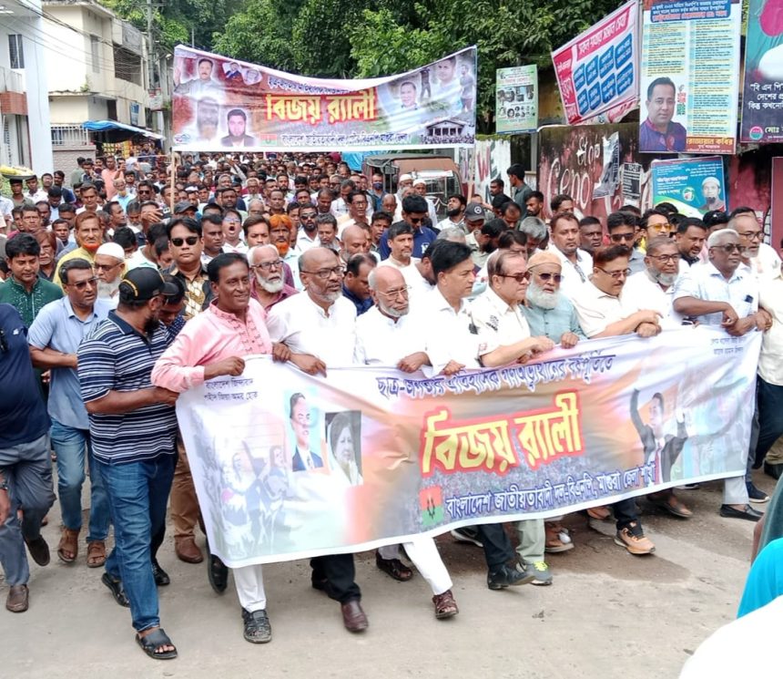 ছাত্র জনতার ঐতিহাসিক গণঅভ্যুত্থানের বর্ষপূর্তিতে কেন্দ্রীয় কর্মসূচির অংশ হিসেবে মাগুরা জেলা বিএনপির আয়োজনে বর্ণাঢ্য বিজয় র্্যালি অনুষ্ঠিত হয়।