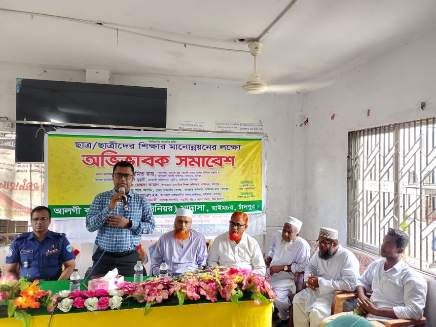 ছাত্র ছাত্রীদের শিক্ষার মানোন্নয়নের লক্ষ্যে হাইমচর উপজেলার ঐতিহ্য বাহি শিক্ষা প্রতিষ্ঠান আলগী বাজার আলিম সিনিয়র মাদ্রাসার অভিভাবক সমাবেশ অনুষ্ঠিত হয়েছে। অভিভাবক সমাবেশে প্রদান অতিথির বক্তব্য রাখেন, উপজেলা নির্বাহী অফিসার ও আলগী বাজার আলীম সিনিয়র মাদ্রাসার গভার্নিং বডির সভাপতি অমিত রায়।