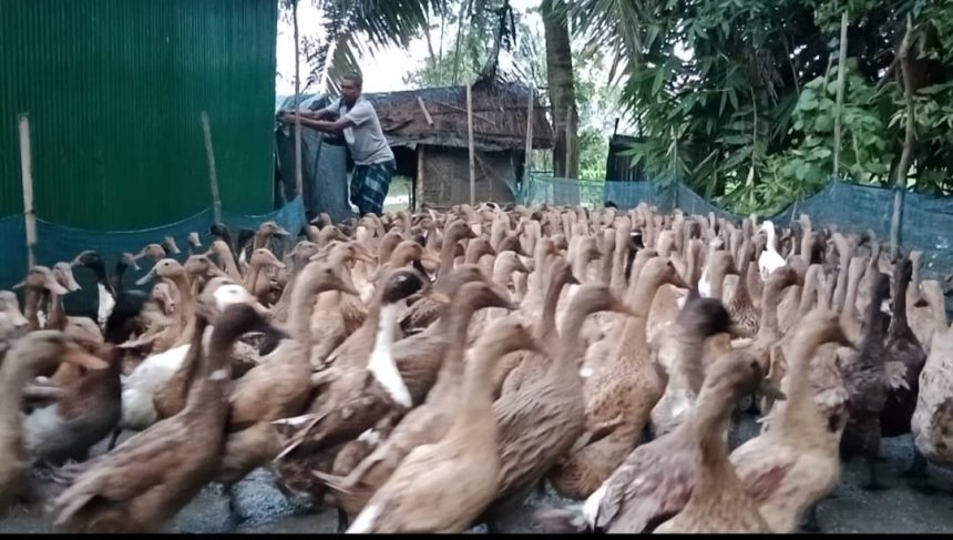সিরাজ গঞ্জ জেলা তাড়াশ উপজেলার ৫নং নওগাঁ ইউনিয়নের কালিদাস নিলী গ্রামের মৃত ওসমান আকন্দর ছেলে (বাচ্চু) নিজ বাড়িতে গড়ে তুলেছেন হাঁসের খামার।