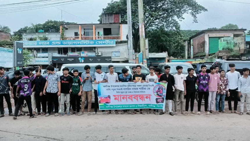 ঝিনাইদহ জেলার কালীগঞ্জে নার্সিং পুড়ুয়া শিক্ষার্থী নাসরিন নাহার শামীমার অস্বাভাবিক মৃত্যুর ঘটনা সুষ্ঠু তদন্ত ও বিচারের দাবিদে মানববন্ধন কর্মসূচী পালন করা হয়েছে।