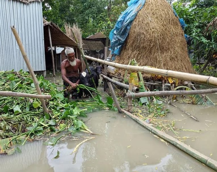 সিরাজগঞ্জের তাড়াশে ভয়াবহ বন্যায় হাজার বিঘার বিস্তীর্ণ গোচারণভূমি ও চাষের জমি ডুবে গেছে পানির স্রোতে। ফলে নিঃশেষ হয়ে গেছে সবুজ ঘাস ও প্রাকৃতিক গোখাদ্যের ভাণ্ডার। প্রাণিসম্পদ রক্ষার্থে এখন নির্ভর করতে হচ্ছে খৈল, ভুসি ও প্যাকেটজাত খাদ্যের ওপর। কিন্তু এই খাদ্যের অস্বাভাবিক মূল্যবৃদ্ধি পশুপালনে সৃষ্টি করেছে নানামুখী সংকট।