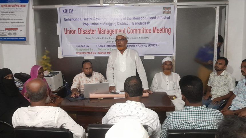 দাতা সংস্থা কোরিয়া ইন্টারন্যাশনাল কো-অপারেশন এজেন্সি (KOICA)-এর আর্থিক সহায়তায় এবং অক্সফাম-এর সহযোগিতায় মানব মুক্তি সংস্থা বাস্তবায়নাধীন “এনহ্যান্সিং ডিজাস্টার রেজিলিয়েন্স ক্যাপাসিটি অফ দ্যা মুনসুন ফ্লাড এফেক্টেড পপুলেশন অফ সিরাজগঞ্জ ডিস্ট্রিক্ট ইন বাংলাদেশ” প্রকল্পের উদ্যোগে সিরাজগঞ্জ জেলার বেলকুচি উপজেলার বড়ধুল ইউনিয়ন পরিষদ সভাকক্ষে ইউনিয়ন দুর্যোগ ব্যবস্থাপনা কমিটির এক সভা অনুষ্ঠিত হয়।