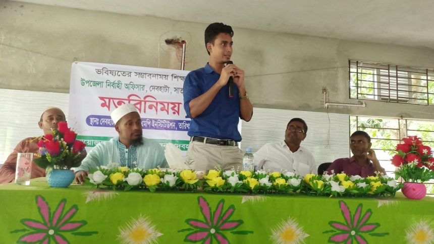 দেবহাটায় ভবিষ্যৎ সম্ভাবনাময় শিক্ষার্থীদের সাথে দেবহাটা উপজেলা নির্বাহী অফিসার কে এম আবু নওশাদ মতবিনিময় করেছেন। সোমবার ১ সেপ্টেম্বর দুপুর ১২টায় দেবহাটা সরকারী বিবিএমপি ইনস্টিটিউশন হাইস্কুল মিলনায়তনে উপজেলার বিভিন্ন মাধ্যমিক বিদ্যালয়ের শিক্ষার্থীদের সাথে এই মতবিনিময় সভা অনুষ্ঠিত হয়। সভায় সভাপতিত্ব করেন দেবহাটা সরকারী বিবিএমপি ইনস্টিটিউশন হাইস্কুলের প্রধান শিক্ষক মদন মোহন পাল। প্রধান অতিথি ছিলেন দেবহাটা উপজেলা নির্বাহী অফিসার কে এম আবু নওশাদ। সভায় অন্যান্যের মধ্যে উপস্থিত ছিলেন ও বক্তব্য রাখেন উপজেলা একাডেমির সুপারভাইজার মিজানুর রহমান, সহকারী প্রধান শিক্ষক শফিকুল ইসলাম, দেবহাটা রিপোর্টার্স ক্লাবের সভাপতি আর.কে.বাপ্পা, দেবহাটা প্রেসক্লাবের সভাপতি মীর খায়রুল আলম, দেবহাটা রিপোর্টার্স ক্লাবের সাধারন সম্পাদক মেহেদী হাসান কাজল, দপ্তর সম্পাদক রিয়াজুল ইসলাম আলম, ক্রীড়া ও সাংস্কৃতিক সম্পাদক আশরাফুল আলম বাদল, দেবহাটা প্রেসক্লাবের সাংগঠনিক সম্পাদক কবির হোসেন, পারুলিয়া বালিকা বিদ্যালয়ের প্রধান শিক্ষক নজরুল ইসলাম, সখিপুর হাইস্কুলের প্রধান শিক্ষক তহিরুজ্জামান, হাদীপুর আহ্ছানিয়া মাধ্যমিক বিদ্যালয়ের প্রধান শিক্ষক আব্দুল জব্বারসহ উপজেলার বিভিন্ন স্কুল ও মাত্রাসার প্রধান শিক্ষক ও সুপারগন। উপজেলার শতাধিক শিক্ষার্থীদের উদ্দেশ্যে ইউএনও কে এম আবু নওশাদ দিক নির্দেশনামূলক বক্তব্য প্রদানকালে বলেন, নিজের আত্ম প্রত্যয়, মনোবল ও অধ্যাবসায়ের মাধ্যমে নিজেদেরকে গড়ে তুলতে হবে। পড়াশুনার প্রতি নিজেকে বিলিয়ে দিয়ে একজন আদর্শ ও ভাল মানুষ হিসেবে নিজেদেরকে প্রতিষ্ঠিত করতে হবে। ইউএনও বলেন, আমরা মানুষ মহান আল্লাহ মালিকের সৃষ্টি করা আশরাফুল মাখলুকাত। তাই কোনকিছুতে পিছিয়ে পড়া যাবেনা, নিজের মনোবল নষ্ট করা যাবেনা। তিনি বলেন, একবার না পারলে নিজের ভুল শুধরে সামনে এগিয়ে যাওয়ার নামই জীবন। এই মতবিনিময় সভায় উপজেলার বিভিন্ন স্কুলের শতাধিক শিক্ষার্থী অংশগ্রহণ করে।