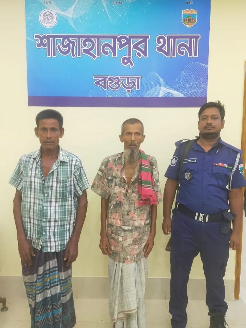 বগুড়া জেলার শাজাহানপুর থানার কৈগাড়ী পুলিশ ফাড়িঁর এসআই (নিঃ) মোঃ ময়নুল ইসলাম সঙ্গীয় অফিসার ও ফোর্সের সহায়তায় ইং-০১/০৯/২০২৫ তারিখ রাত্রি ০৮.৩০ ঘটিকার সময় শাজাহানপুর থানাধীন ২১ নং ওয়ার্ড, মাদলা বাজারের তোফাজ্জলের ফল দোকানের সামনে পাকা রাস্তার উপর হইতে আসামী ১। মোঃ নজমল সরকার @ নইল্যা (৫৪), পিতা- মৃত কেরামত আলী @ ক্যামু সরকার, সাং- মাদলা জানপাড়া, থানা- শাজাহানপুর, জেলা- বগুড়া, এর হেফাজত হইতে ১০০ (একশত গ্রাম) মাদকদ্রব্য গাঁজা এবং আসামী ২। আব্দুস সামাদ (৫৫), পিতা-পিতা- মৃত ছৈমুদ্দিন সরকার, সাং- মাদলা, থানা- শাজাহানপুর, জেলা- বগুড়া এর হেফাজত হইতে ১০০ (একশত গ্রাম) মাদকদ্রব্য গাঁজাসহ আটক করিয়া তাহাদের বিরুদ্ধে মাদক আইনে মামলা দায়ের করে বিজ্ঞ আদালতে সোপর্দ করা হয়।