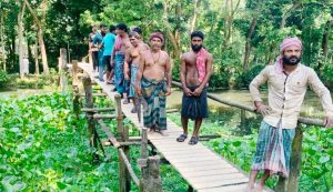বরিশালের ১০ গ্রামের মানুষের ভরসা কাঠের সাঁকো