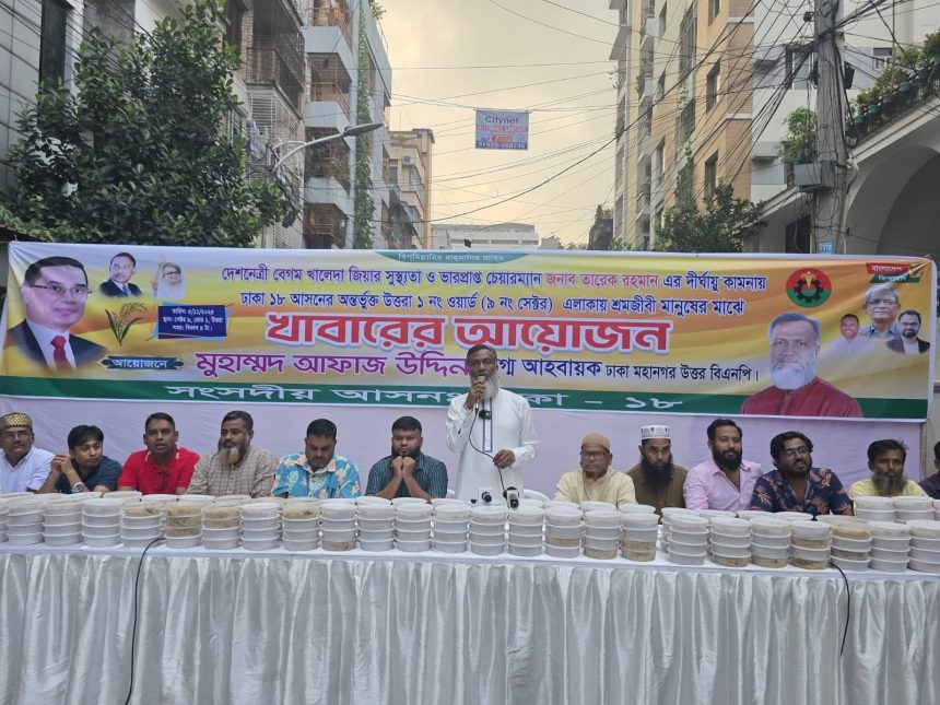 বাংলাদেশ জাতীয়তাবাদী দল (বিএনপি)-এর চেয়ারপার্সন দেশনেত্রী বেগম খালেদা জিয়ার দ্রুত সুস্থতা এবং বিএনপি’র ভারপ্রাপ্ত চেয়ারম্যান তারেক রহমানের দীর্ঘায়ু কামনায় উত্তরা পশ্চিম থানা আওতাধীন ১ নং ওয়ার্ডের শ্রমজীবী ভাই-বোনদের মাঝে খাবার বিতরণ কর্মসূচি অনুষ্ঠিত হয়েছে।