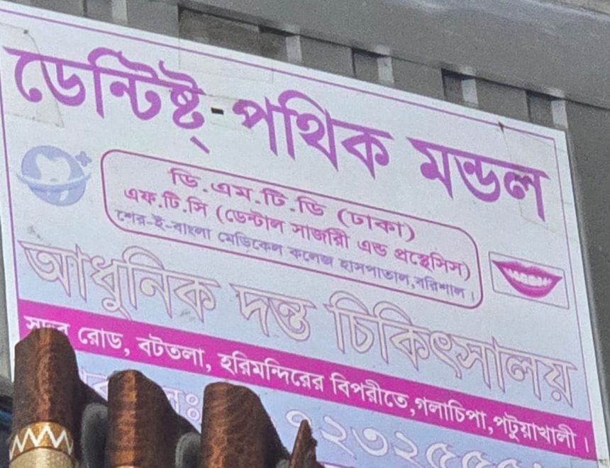 অভিযোগকারী সেরাজুল সরদার জানান, “আমি দাঁতের গর্ত ফিলিং করাতে গিয়েছিলাম। কিন্তু তিনি ফিলিং না করে আমার দাঁত তুলে ফেলেছেন। তার কোনো BMDC রেজিস্ট্রেশন নেই, তবুও ডেন্টিস্ট পরিচয়ে প্রেসক্রিপশন দেন।”
