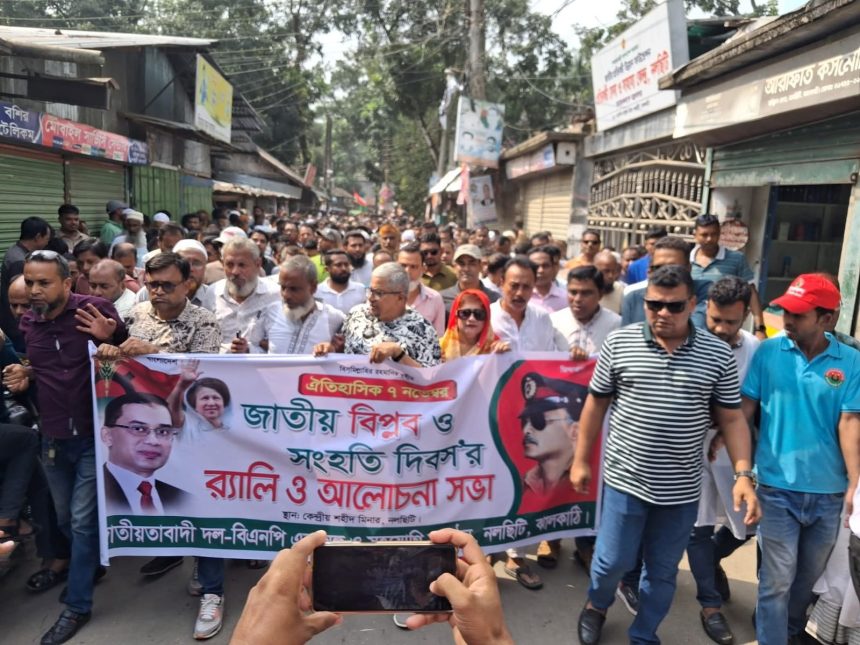 নলছিটিতে জাতীয় বিপ্লব ও সংহতি দিবস উপলক্ষে বর্ণাঢ্য র‌্যালি, ইলেন ভুট্টোর ঐক্যের আহ্বান