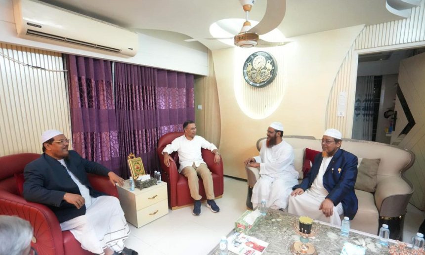 ইসলামী আন্দোলন বাংলাদেশের আমির ও চরমোনাই পীর মুফতি সৈয়দ মুহাম্মদ রেজাউল করীমের সাথে সৌজন্য সাক্ষাৎ করতে তার বাসায় গেছেন বিএনপির চেয়ারম্যান তারেক রহমান।