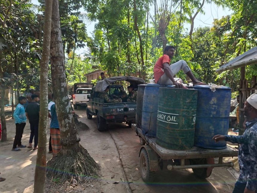 দেশের জ্বালানি সংকটের মধ্যে বিপুল পরিমাণ জ্বালানি তেল মজুদ আছে এমন গোপন সংবাদের ভিত্তিতে আর্মি, র্যাব, পুলিশ সমন্বয়ে যৌথ বাহিনীর সদস্যরা অভিযান চালিয়ে চেয়ারম্যান ফেরদৌস মোড়লের বাড়িতে অভিযান চালিয়ে ১২,শ লিটার ডিজেল অবৈধ ভাবে মজুদ করার অপরাধে ১০ হাজার টাকা জরিমানা করে জব্দকৃত তেল থানায় জমা দেওয়া হয়েছে। সাতক্ষীরার কালিগঞ্জ উপজেলার মৌতলা ইউনিয়ন পরিষদের চেয়ারম্যান ফেরদৌস মোড়লের বাড়িতে রবিবার (১২ এপ্রিল) দুপুর ১২ টার দিকে ভ্রাম্যমান আদালতের নির্বাহী ম্যাজিস্ট্রেড ইশতিয়াক আহমেদ অপু অভিযান পরিচালনা করে ভ্রাম্যমান আদালতের মাধ্যমে এ জরিমানার টাকা আদায় করা হয়। এ সময় তার সঙ্গে সাতক্ষীরা আর্মি ক্যাম্পের সিনিয়র ওয়ারেন্ট অফিসার তোফাজ্জল হোসেনের নেতৃত্বে র্যাব এবং পুলিশ সদস্যরা উপস্থিত ছিলেন। অভিযানের সময় চেয়ারম্যান ফেরদাউস মোড়ল দাবি করেন তার চিংড়ি ঘেরে পানি উত্তোলনের জন্য সেচ মেশিনে ব্যবহার এবং একাধিক ভেকু গাড়ি প্রতিদিন পরিচালনার জন্য এ তেল মজুদ করা হয়েছিল। তবে স্থানীয়দের দাবি চেয়ারম্যান ফেরদৌস মোড়ল প্রভাব খাটিয়ে এবং প্রশাসনকে ম্যানেজ করে দীর্ঘদিন যাবৎ তার বাড়িতে জ্বালানি তেল মজুদ করে গোপনে বেশি দামে বিক্রি করে আসছিল। অভিযান পরিচালনা শেষে এক্সিকিউটিভ ম্যাজিস্ট্রেট ইশতিয়াক আহমেদ অপু সাংবাদিকদের জানান অভিযানে ডিজেলের অতিরিক্ত মজুদ রাখায় পেট্রোলিয়াম আইন ২০১৬ অনুযায়ী ১০ হাজার টাকা অর্থদণ্ড ও ৬ ব্যারেল ডিজেল জব্দ করা হয় । অভিযান কালে অভিযুক্ত চেয়ারম্যান ফিরদৌস মোড়ল ভবিষ্যতে এ ধরনের অবৈধ মজুদ করবেন না মর্মে অঙ্গীকার নামায় স্বাক্ষর করেন।