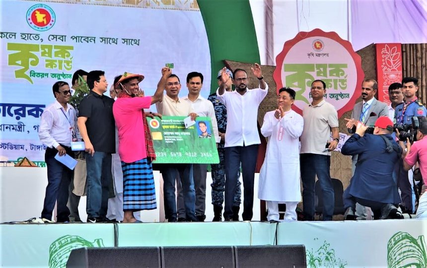 কৃষক কার্ড বিতরণ কার্যক্রম উদ্বোধন করে প্রধানমন্ত্রী তারেক রহমান বলেছেন, কৃষক সচ্ছল থাকলে সমগ্র বাংলাদেশ ভালো থাকবে। মঙ্গলবার (১৪ এপ্রিল) দুপুর সোয়া ১২টার দিকে টাঙ্গাইল শহীদ মারুফ স্টেডিয়ামে এই কার্যক্রম উদ্বোধনের সময় তিনি স্থানীয় ১৫ জন কিষান-কিষানির হাতে কৃষক কার্ড ও গাছের চারা তুলে দেন।