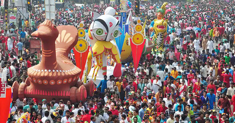 নতুন বছরকে স্বাগত জানিয়ে ঢাকা বিশ্ববিদ্যালয়ে শুরু হয়েছে বৈশাখী শোভাযাত্রা। মঙ্গলবার (১৪ এপ্রিল) সকাল ৯টায় চারুকলা ইনস্টিটিউট থেকে এটি শুরু হয়। শোভাযাত্রাটি শাহবাগ, মৎসভবন, দোয়েল চত্বর ও টিএসসি হয়ে পুনরায় চারুকলা এসে শেষ হবে। এতে অংশ নিয়েছেন নারী-পুরুষ ও শিশুরা।