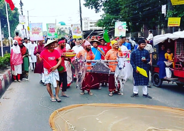 আজ মঙ্গলবার দুপুরে ঢাক-ঢোল, লাঙ্গল- জোয়াল,পালকিসহ দেশীয় ঐতিহ্য ও সংস্কৃতি তুলে ধরা হয় শোভযাত্রায় রংপুরের সরকারী বেসরকারী দপ্তরের কর্মকর্তা, বিভিন্ন শিক্ষাপ্রতিষ্ঠানের শিক্ষার্থীসহ বিভিন্ন শ্রেণী-পেশার মানুষ অংশ নেয়।