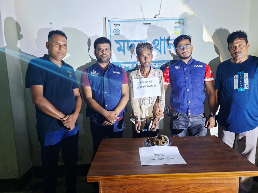 নেত্রকোনার মদন উপজেলায় মাদকবিরোধী বিশেষ অভিযান চালিয়ে ১৭০ গ্রাম গাঁজাসহ মোঃ নজরুল ইসলাম (৪৫) নামে এক পেশাদার মাদক ব্যবসায়ীকে গ্রেফতার করেছে পুলিশ।