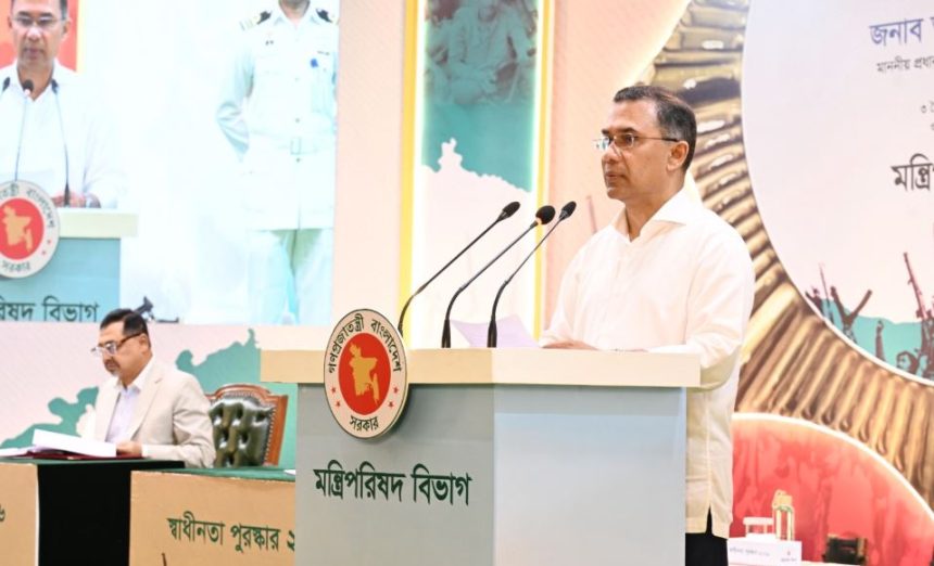বাংলাদেশের সবচেয়ে গৌরবময় পুরস্কার ‘স্বাধীনতা পুরস্কার’ উল্লেখ করে প্রধানমন্ত্রী তারেক রহমান বলেন, দেশের সবচেয়ে গৌরবজনক রাষ্ট্রীয় সম্মান। স্বাধীন বাংলাদেশে বিভিন্ন ক্ষেত্রে যারা দেশ এবং জনগণের জন্য স্মরণীয় অবদান রেখেছেন কিংবা রাখবেন, তাদেরকে রাষ্ট্রীয় সম্মাননায় ভূষিত করতে বাংলাদেশের স্বাধীনতার ঘোষক শহীদ প্রেসিডেন্ট জিয়াউর রহমান ১৯৭৭ সালে ‘স্বাধীনতা পুরস্কার’ প্রবর্তন করেছিলেন।