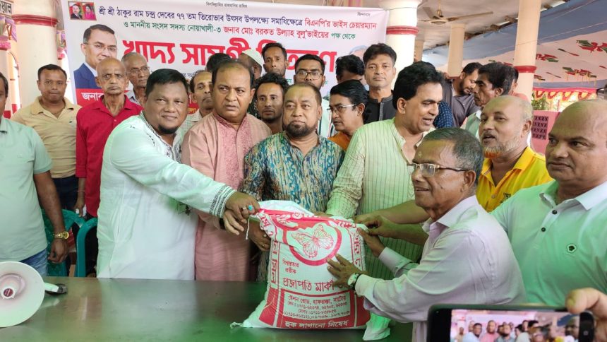 নোয়াখালীতে ঠাকুর রাম চন্দ্র দেবের ৭৭তম তিরোভাব উৎসব উপলক্ষে বিএনপির খাদ্য সামগ্রী বিতরণ