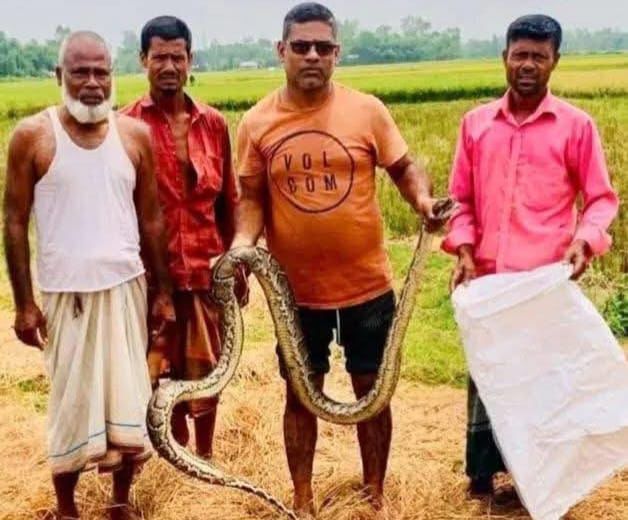 স্থানীয় মৎস্যজীবীরা মাছ ধরার সময় জালে অজগরটি আটকা পড়ে থাকতে দেখেন। পরে বিষয়টি তারা বাংলাদেশ বন্যপ্রাণী সেবা ফাউন্ডেশনের সজল দেব খবর পেয়ে এবং সাথে পরিবেশকর্মী রাজদ্বীপ দেব ঘটনাস্থলে পৌঁছে প্রায় আধাঘণ্টার চেষ্টায় পানির ভেতর থেকে জালসহ অজগরটি উদ্ধার করেন।