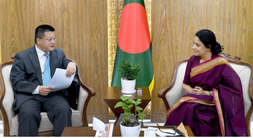 বুধবার চীনের রাষ্ট্রদূত ইয়াও ওয়েন ও পরিবেশ উপদেষ্টা সৈয়দা রিজওয়ানা হাসানের মধ্যে বাংলাদেশ সচিবালয়ে একটি সৌজন্য সাক্ষাৎ অনুষ্ঠিত হয়। বৈঠকে দুই দেশের মধ্যে পানি ব্যবস্থাপনা ও পরিবেশ সুরক্ষায় সহযোগিতা বাড়ানোর বিষয়ে আলোচনা হয়।