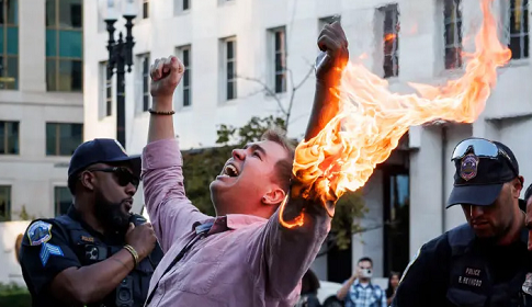 এবার হোয়াইট হাউসের বাইরে গায়ে আগুন দিলেন ইসরাইলবিরোধী সাংবাদিক