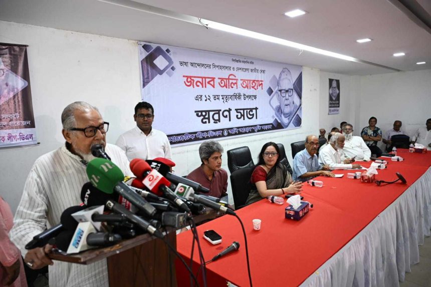 শনিবার (২৬ অক্টোবর) জাতীয় প্রেস ক্লাবের আবদুস সালাম হলে ডেমোক্রেটিক লীগ (ডিএল) এবং অলি আহাদ স্মৃতি সংসদের উদ্যোগে আয়োজিত ভাষা আন্দোলনের সিপাহসালার ও দেশ বরেণ্য জাতীয় নেতা অলি আহাদ এর ১২ তম মৃত্যু বার্ষিকী উপলক্ষে আয়োজিত স্মরণ সভায় তিনি এ মন্তব্য করেন।