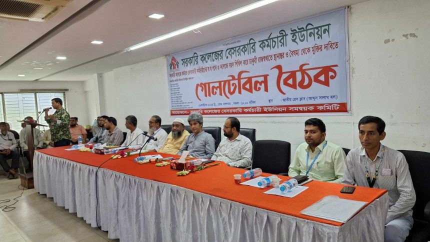 গোলটেবিল বৈঠকে সরকারি কলেজের বেসরকারি কর্মচারীরা বলেন, আমরা বৈষম্যের শিকার। আমরা সরকারি কলেজের বিভিন্ন দায়িত্ব পালন করি। কিন্তু আমাদের চাকরি বেসরকারি রয়ে গেছে। আমাদের জীবনের মান উন্নয়ন হয়নি।