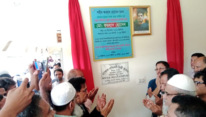 বৈষম্য বিরোধী ছাত্র আন্দোলনে নিহত শহীদ ফরহাদ হোসেনের নামে কলেজ ভবনের নামকরণ