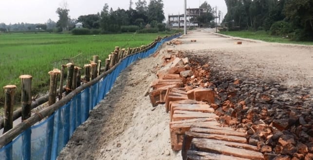 শাহজাদপুরে সরকারি সড়ক নির্মাণে রডের বদলে বাঁশ, খোয়ার বদলে পোড়া মাটি