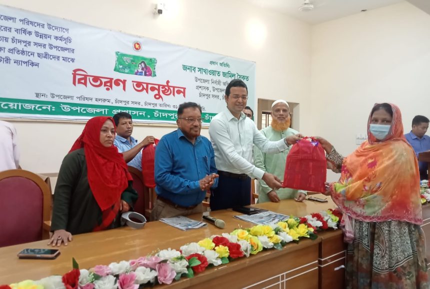 চাঁদপুর সদর উপজেলায় বিভিন্ন মাধ্যমিক বিদ্যালয়ের ছাত্রীদের মাঝে স্যানিটারি ন্যাপকিন বিতরণ করা হয়েছে। বৃহস্পতিবার (৩১ জুলাই) সকালে সদর উপজেলা পরিষদ মিলনায়তনে ২০২৪-২৫ অর্থ বছরের বার্ষিক উন্নয়ন কর্মসূচি (এডিপি) এর আওতায় উপজেলা প্রশাসনের আয়োজনে এ কর্মসূচি বাস্তবায়ন করা হয়।