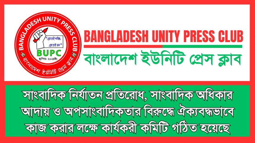 সাংবাদিকদের ন্যায্য অধিকার প্রতিষ্ঠা, সাংবাদিক নির্যাতনের বিরুদ্ধে রুখে দাঁড়ানো এবং অপসাংবাদিকতার বিরুদ্ধে কার্যকর ভূমিকা পালনের লক্ষ্যকে সামনে রেখে যাত্রা শুরু করেছে নতুন একটি জাতীয় পর্যায়ের সাংবাদিক সংগঠন — বাংলাদেশ ইউনিটি প্রেস ক্লাব (বিইউপিসি)।