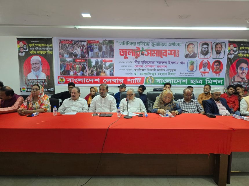 জাতীয় প্রেসক্লাবে বাংলাদেশ লেবার পার্টি আয়োজিত “জুলাই সমাবেশ”-এ বিএনপির স্থায়ী কমিটির সদস্য নজরুল ইসলাম খান বলেছেন, “গণ-অভ্যুত্থানের মাধ্যমে দেশ থেকে ফ্যাসিবাদ বিদায় করতে পারলেও গণতন্ত্র পুনঃপ্রতিষ্ঠা করতে পারিনি।” তিনি বলেন, যারা গুম-খুন ও লুটপাটে জড়িত, তাদের বিচার বিলম্ব না করে দ্রুত সম্পন্ন করতে হবে। এজন্য দ্রুত বিচার ট্রাইব্যুনাল গঠনের প্রস্তাবও পুনর্ব্যক্ত করেন তিনি।