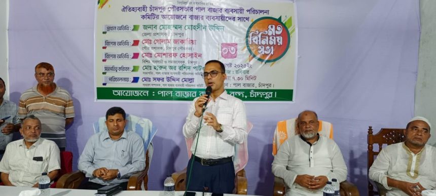 ঐতিহ্যবাহী চাঁদপুর পৌরসভার পাল বাজার ব্যবসায়ী পরিচালনা কমিটির আয়োজনে বাজার ব্যবসায়ীদের সঙ্গে এক মতবিনিময় সভা অনুষ্ঠিত হয়েছে।