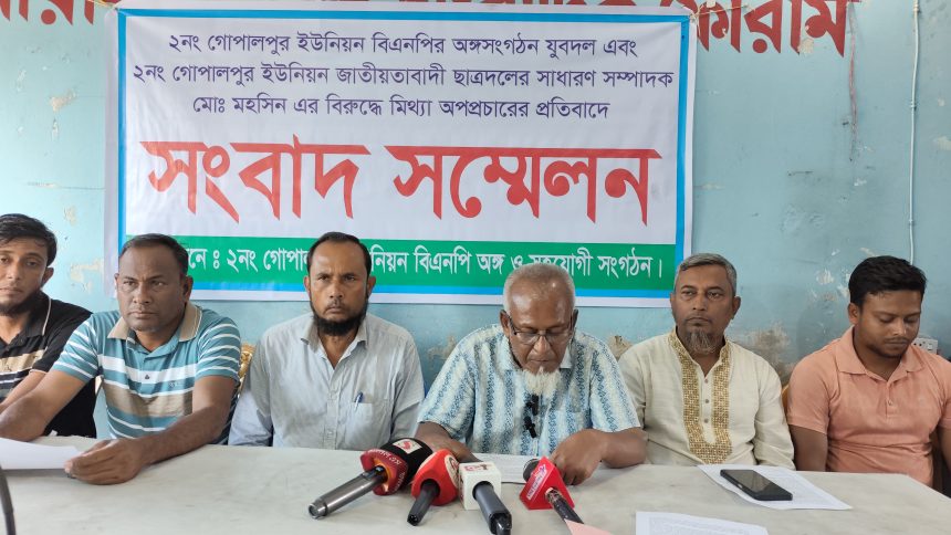 নোয়াখালীতে গোপালপুর ইউনিয়ন বিএনপি, যুবদল ও ছাত্রদলের সাধারণ সম্পাদক মহসিন এর বিরুদ্ধে মিথ্যা অপপ্রচারের প্রতিবাদে সংবাদ সম্মেলন অনুষ্ঠিত হয়েছে।