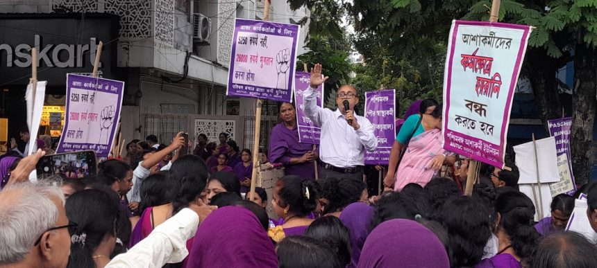 আমাদের দাবী….. ৫২৫০ টাকা নয়, রাজ্য সরকারের ঘোষিত ন্যূনতম ভাতা- মিনিমাম ওয়েজ- আশা কর্মীদের জন্য বরাদ্দ করতে হবে।