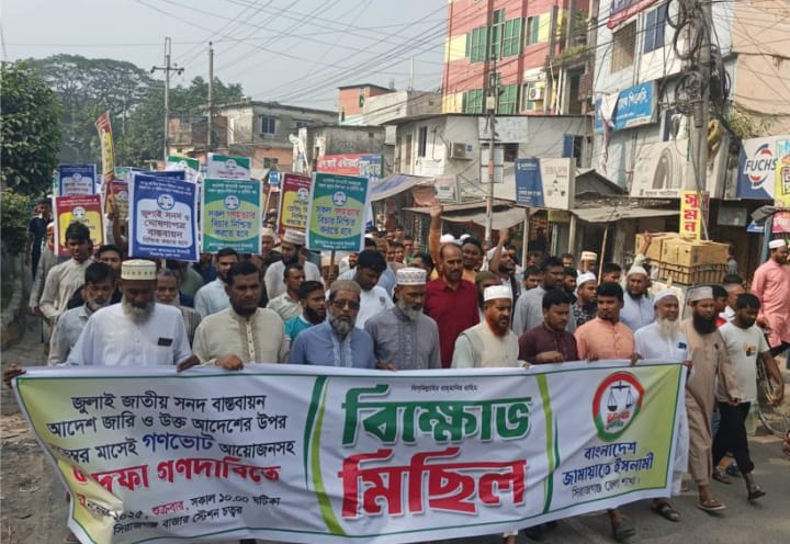 সিরাজগঞ্জে জুলাই জাতীয় সনদ বাস্তবায়ন আদেশ জারি, নভেম্বর মাসেই গণভোটের আয়োজনসহ পাঁচ দফা দাবিতে বিক্ষোভ মিছিল ও সমাবেশ করেছে জামায়াতে ইসলামী।