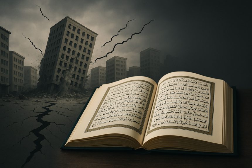 ভূমিকম্পের বিভীষিকা সম্পর্কে আল্লাহ তাআলা বলেছেন, ‘হে মানব জাতি, তোমরা ভয় করো তোমাদের রবকে। নিশ্চয়ই কেয়ামত দিবসের ভূকম্পন হবে মারাত্মক ব্যাপার। যেদিন তোমরা তা প্রত্যক্ষ করবে, স্তন্যপায়ী মা তার দুগ্ধপোষ্য সন্তানের কথা ভুলে যাবে আর সব গর্ভবতীর গর্ভপাত হয়ে যাবে। মানুষকে মাতালের মতো দেখাবে, আসলে তারা নেশাগ্রস্ত নয়। বস্তুত আল্লাহর শাস্তি হবে অত্যন্ত ভয়াবহ।’ (সুরা হজ: ১-২)